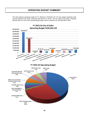 are the General Fund which comprises $44,350,725 or 40.6%, and the Utility Fund which comprises
