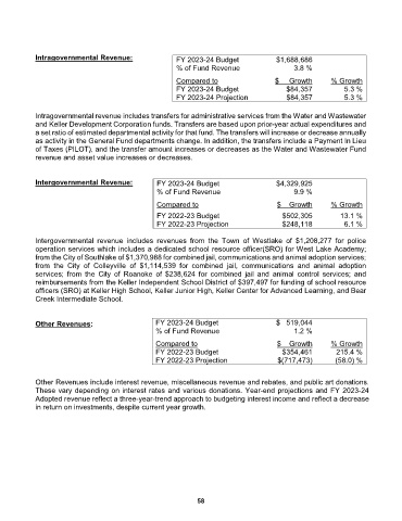 Intergovernmental revenue includes revenues from the Town of Westlake of $1,208,277 for police