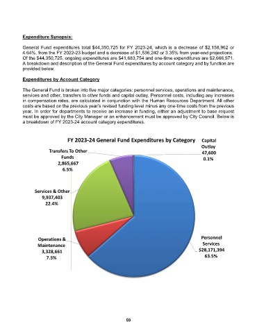 A breakdown and description of the General Fund expenditures by account category and by function are