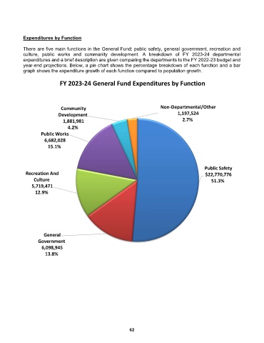 There are five main functions in the General Fund: public safety, general government, recreation and