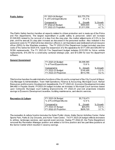 The recreation & culture function includes the Keller Public Library, Keller Senior Activities Center, Keller