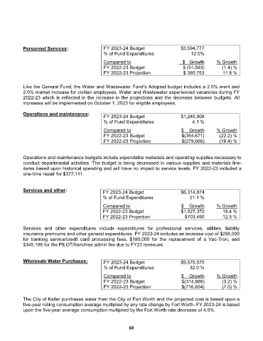 The City of Keller purchases water from the City of Fort Worth and the projected cost is based upon a
