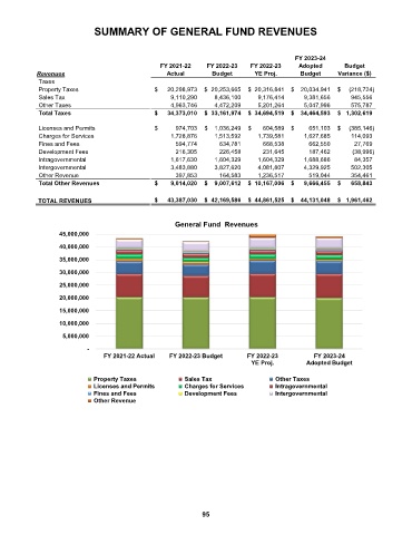 SUMMARY OF GENERAL FUND REVENUES