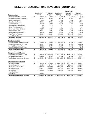 DETAIL OF GENERAL FUND REVENUES (CONTINUED)