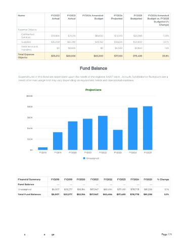 Expenditures in this fund are dependent upon the needs of the regional SWAT team. As such, fund balance uctations are a