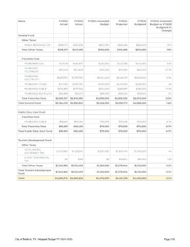 City of Bedford, TX | Adopted Budget FY 2024-2025 Page 216