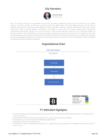 City of Bedford, TX | Adopted Budget FY 2024-2025 Page 265