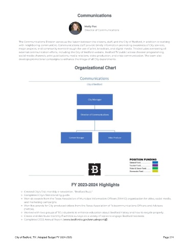 City of Bedford, TX | Adopted Budget FY 2024-2025 Page 274