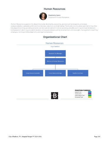 City of Bedford, TX | Adopted Budget FY 2024-2025 Page 294