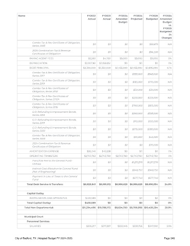City of Bedford, TX | Adopted Budget FY 2024-2025 Page 346