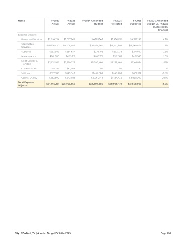 City of Bedford, TX | Adopted Budget FY 2024-2025 Page 434