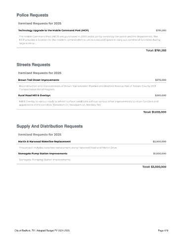 City of Bedford, TX | Adopted Budget FY 2024-2025 Page 479