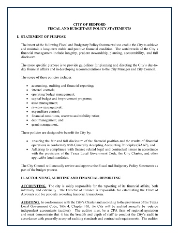 ACCOUNTING. The city is solely responsible for the reporting of its financial affairs, both