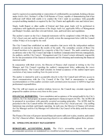 accepted auditing standards as required by the City Charter and applicable state and federal laws.