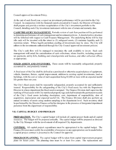 Council approved Investment Policy.