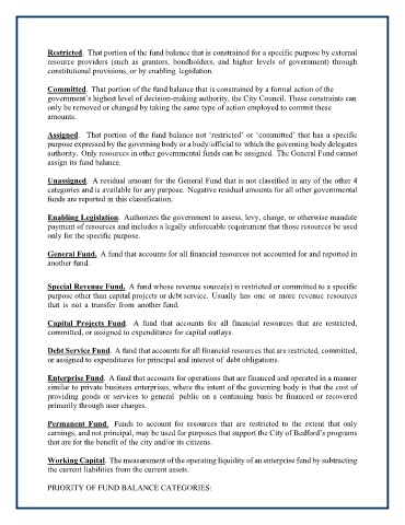 PRIORITY OF FUND BALANCE CATEGORIES: