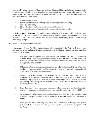 results of this compliance audit must be reported annually to the City Council. The internal controls