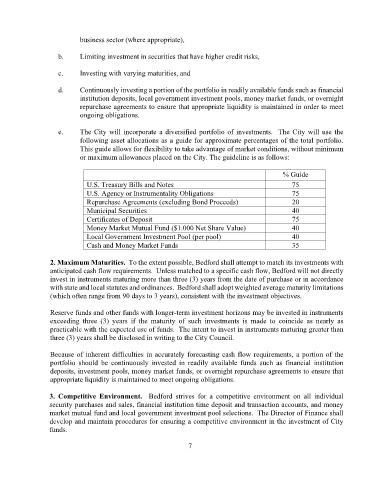 with state and local statutes and ordinances. Bedford shall adopt weighted average maturity limitations