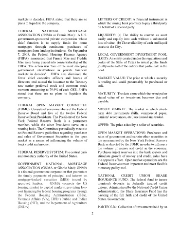 markets in decades. FHFA stated that there are no LETTERS OF CREDIT: A financial instrument in