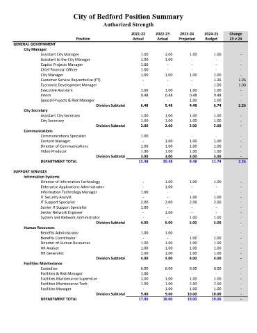 Assistant City Manager 1.00 2.00 1.00 1.00 -