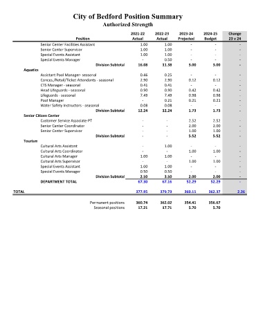 Cultural Arts Supervisor - - 1.00 1.00 -