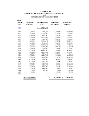 CONSOLIDATED SCHEDULE OF GENERAL OBLIGATION