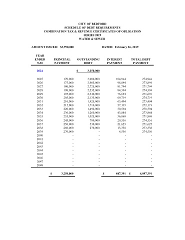 ENDED PRINCIPAL OUTSTANDING INTEREST TOTAL DEBT
