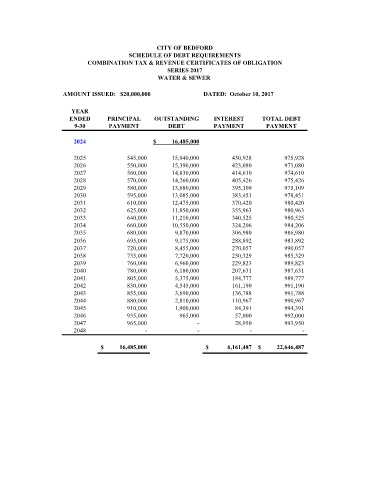 ENDED PRINCIPAL OUTSTANDING INTEREST TOTAL DEBT