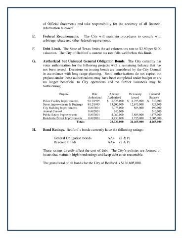 G. Authorized but Unissued General Obligation Bonds. The City currently has