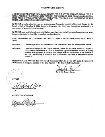 AN ORDINANCE ADOPTING THE ANNUAL BUDGET FOR THE CITY OF BEDFORD, TEXAS, FOR THE