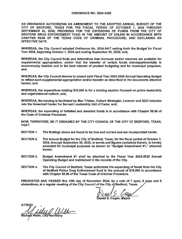NOW, THEREFORE, BE IT ORDAINED BY THE CITY COUNCIL OF THE CITY OF BEDFORD, TEXAS,