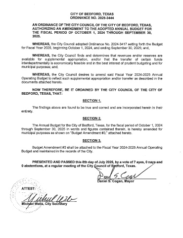WHEREAS, the City Council adopted Ordinance No. 2024-3417 setting forth the Budget
