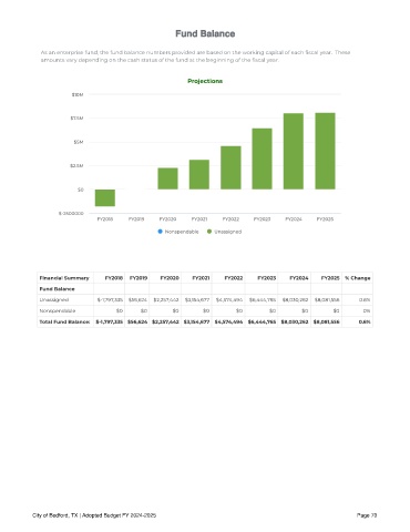 As an enterprise fund, the fund balance numbers provided are based on the working capital of each scal year. These