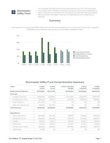 Stormwater Utility Fund Comprehensive Summary