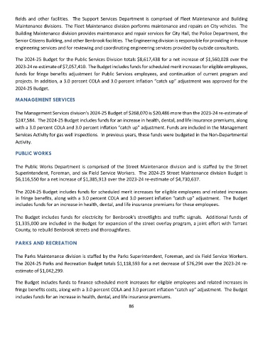 fields and other facilities. The Support Services Department is comprised of Fleet Maintenance and Building