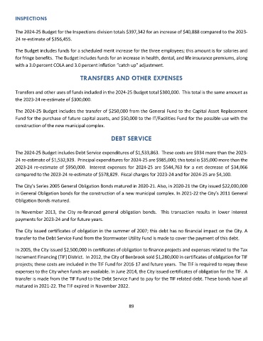 The 2024-25 Budget for the Inspections division totals $397,342 for an increase of $40,888 compared to the 2023-