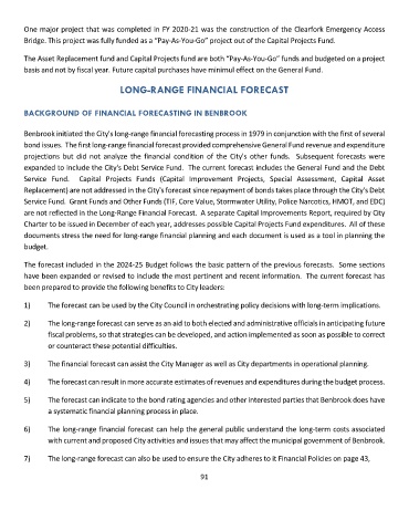 are not reflected in the Long-Range Financial Forecast. A separate Capital Improvements Report, required by City