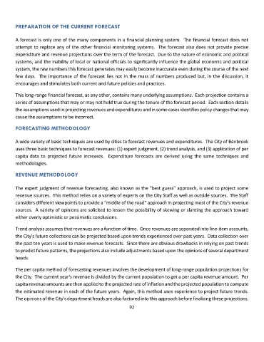 A wide variety of basic techniques are used by cities to forecast revenues and expenditures. The City of Benbrook