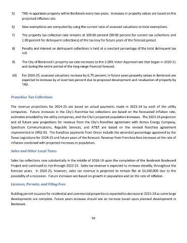 10) For 2024-25, assessed valuations increase by 6.75 percent; in future years property values in Benbrook are