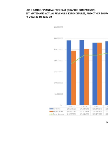 LONG RANGE-FINANCIAL FORECAST (GRAPHIC COMPARISON) ESTIMATED AND ACTUAL REVENUES, EXPENDITURES, AND OTHER SOURCES (USES) FY 2022-23 TO 2029-30 100