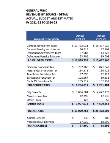TOTAL TAXES $ 19,029,762 $ 21,478,902 $ 21,509,743 $ 21,962,931 $ 1,319,223 $ 23,282,154