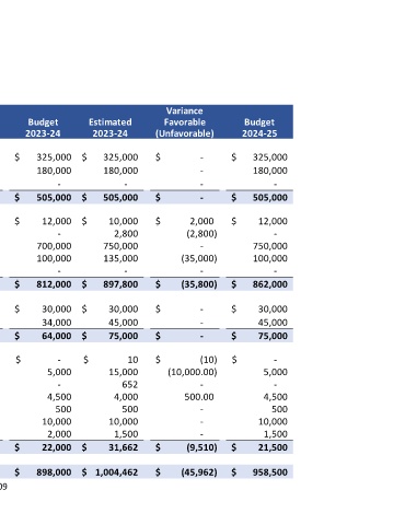Account Description 2021-22 2022-23 2023-24 2023-24 (Unfavorable) 2024-25
