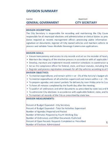 Percent of Budget Expended - City Secretary 94.7% 89.9% 88.9% 100.0%