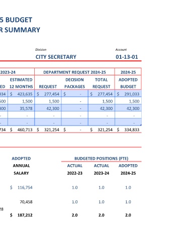 City Secretary 34 $7,260 to $9,730 $ 116,754 1.0 1.0 1.0