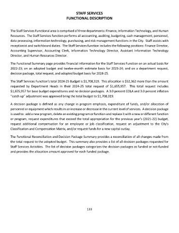 Staff Services Activities. The list of decision packages categorizes the decision packages as funded or not-funded