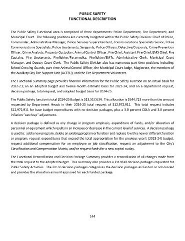 Public Safety Activities. The list of decision packages categorizes the decision packages as funded or not-funded