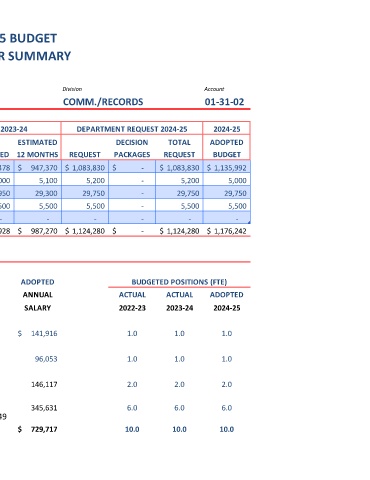 CLASSIFICATION ACTUAL ACTUAL BUDGETED 12 MONTHS REQUEST PACKAGES REQUEST BUDGET