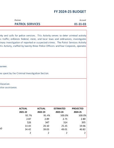 vehicle accidents; and responds to all types of service calls including the preliminary investigation of reported or suspected crimes. The Patrol Services Activity