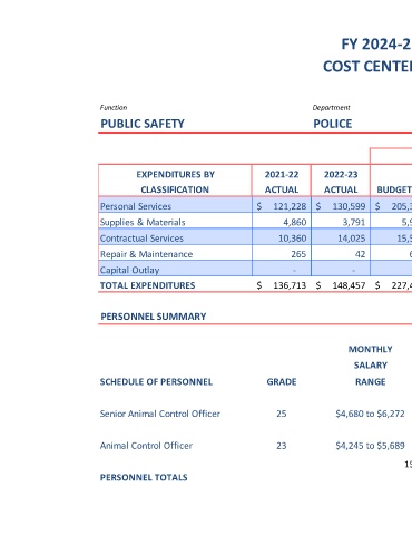 Senior Animal Control Officer 25 $4,680 to $6,272 $ 71,677 1.0 1.0 1.0