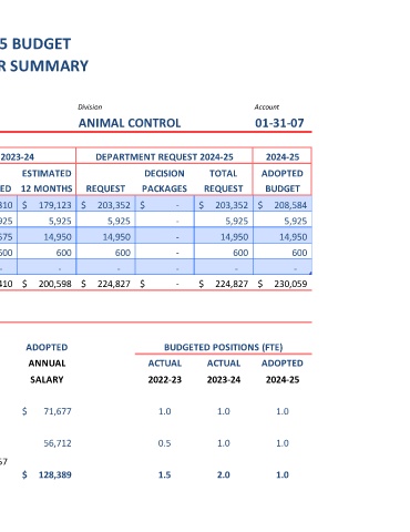Senior Animal Control Officer 25 $4,680 to $6,272 $ 71,677 1.0 1.0 1.0